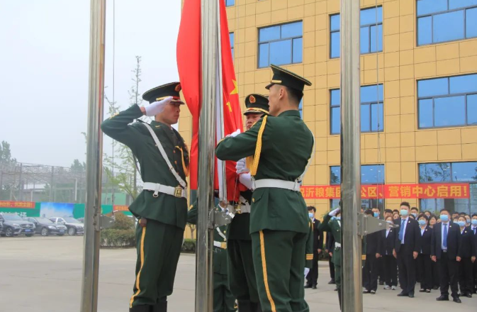在中国(临沂)国际智慧粮油商贸城项目观摩现场,集团举行了隆重的升国旗、奏国歌仪式。