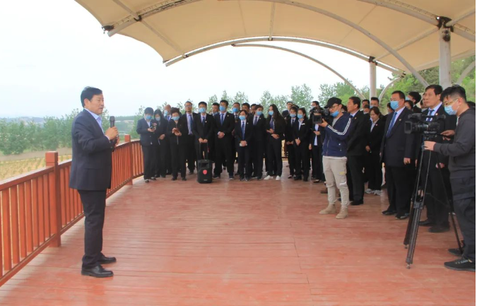 在云蒙庄园营销中心,集团副总经理、蒙阴分公司总经理黄鑫介绍了云蒙庄园建设情况。他表示,蒙阴分公司正按照集团“百日会战”要求,加快施工进度,争取把因疫情耽误的时间抢回来,完成集团下达的各项任务目标。