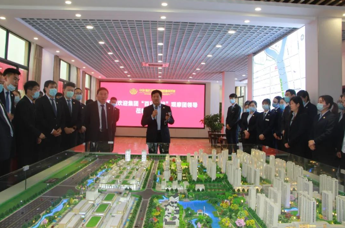随后,沂粮集团常务副总经理刘明宝为观摩团详细介绍了项目营销中心、办公区、生活区情况,大家为项目在短时间内发生的显著变化给予点赞。全体人员还观看了粮油城项目宣传片。