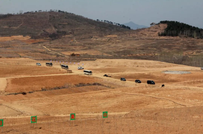 天基集团董事长黄金山在致辞中表示,热烈欢迎各级领导莅临项目参观指导!刚才张主任已经介绍了,目前基地基础的东西已经具备了,现在就是填内容。经过了这个疫情,我们3月中旬才开始动工,这十几天的时间里张书记、林业局的沈局长、李局长、还有区里的领导都过来关注指导,目前初见规模。下一步我们就是要重点打造景点,按照我们的规划辐射到全省乃至打造国内的一个亮点。现在正在逐步的运作,目前还看不出效果,只能看到一个规模。我们计划到国庆节前后搞一个开园仪式,到那个时候展现在大家面前的就是水果飘香,到处都是青山绿水了。我们跟平阴县玫瑰研究所合作种植了100亩的玫瑰,这个湖叫玫瑰湖,水质很好。所以说100亩6万株玫瑰栽上了,到那个时候玫瑰湖玫瑰花开了,有食用的,有观赏的,就是真正的玫瑰湖了,欢迎大家以后有机会来这里观看。