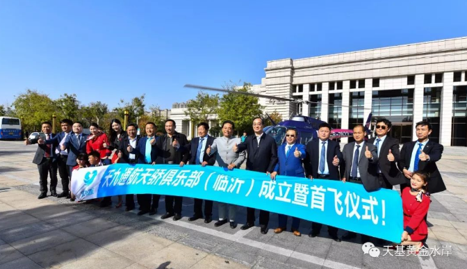 天公作美!当天的沂蒙大地,碧水蓝天,绚丽多彩。中午时分,天九通航天骄(临沂)俱乐部首飞仪式在蓝海国际饭店正式开启。