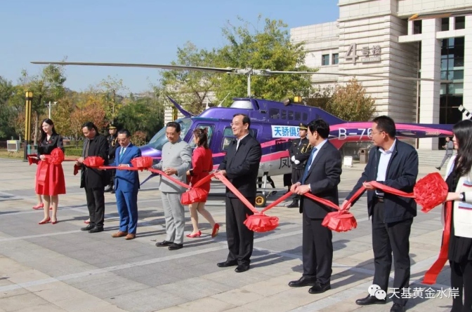 卢俊卿、吴昌力、黄金山等领导乘坐直升机,迈出了天九通航天骄(临沂)俱乐部发展的第一步。乘机领导从空中领略了临沂滨河风景。并为临沂滨河风景线——天基黄金水岸项目点赞。
