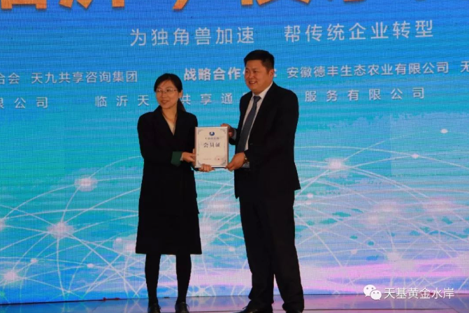 天九共享集团董事局主席卢俊卿作《抱团加速独角兽 智慧转型新经济》主旨报告,为临沂企业家上了一堂生动的经济课,有效帮助临沂企业家更好地抓住经济新业态、发展新机遇。
