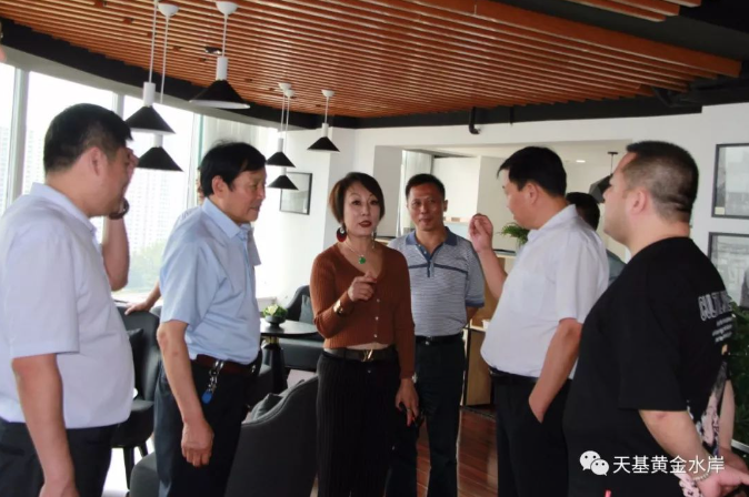 上午11时许,宝芝林集团董事局主席丁丁女士一行莅临天基集团开发建设的黄金水岸项目参观考察。丁丁主席饶有兴趣地听取了项目介绍,参观了园区、天基国际写字楼和天基共享空间,并给予高度评价。丁丁主席和天基集团董事长黄金山共同探讨了下一步合作的领域和方向。丁丁主席一再表示,看好天基集团,对合作前景充满了期待。