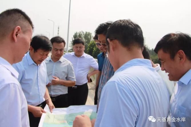 访问团来到罗庄项目现场,听取天基集团董事长黄金山(左二)介绍项目情况