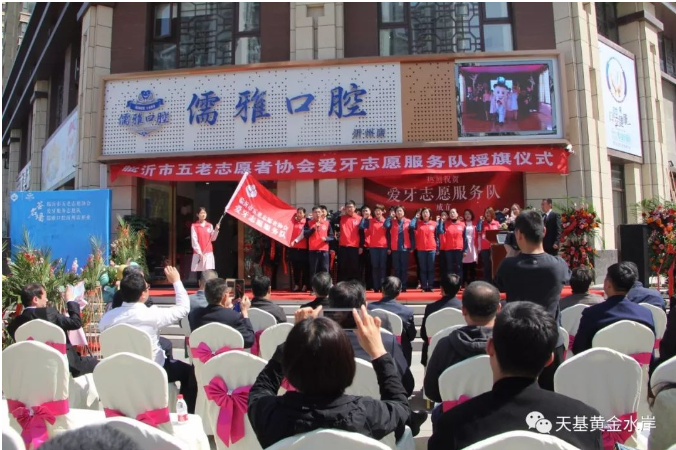4月14日,临沂市五老志愿者协会爱牙志愿服务队成立大会在儒雅口腔沂州店隆重举行,市五老志愿者协会会长黄金山向爱牙志愿服务队队长、儒雅口腔医院院长厉建功授旗。爱牙志愿服务队是市五老志愿者协会建立以来成立的第一支志愿服务队,标志着我市五老志愿服务活动开启了新征程。