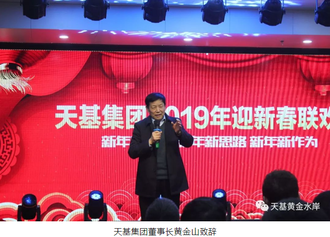 风雨送春归,飞雪迎春到。一场瑞雪过后,天基国际写字楼更显雄伟壮丽。腊月廿六,天基集团2019年迎新春联欢会在装饰一新的天基大会堂隆重举行。集团董事长黄金山、总经理王勇、集团领导班子和全体员工,欢聚一堂,喜迎新春佳节。