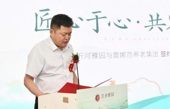 上午11时许,签约启动仪式正式开始。天基集团副总经理、沂粮集团董事长黄焱首先上台致辞,黄总对天基集团的发展以及沂河雅园项目的健康、颐养理念进行深度解读,并表示此次双方的合作不仅是有着健康颐养基因企业的强强联手,更是一场高质量的双赢,以“颐养、健康、宜居”为建设理念,致力于为临沂市民打造一处“都市生态宜居社区”。