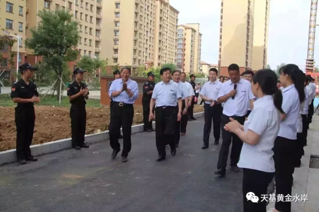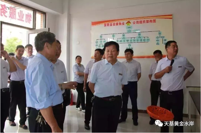 当来到新的物业服务中心时,黄金山董事长、王勇总经理等领导,受到安康物业公司员工列队欢迎。黄金山董事长指出,安康物业是蒙阴首屈一指的物业品牌,要立足新起点,大胆地想、大胆地干,向着三星级物业进军。