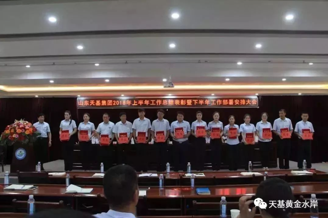 会上,王勇总经理宣读了天基集团《关于表彰奖励2018年上半年工作先进单位和先进个人的决定》。黄金山董事长为他们颁发了奖牌、荣誉证书和奖金。