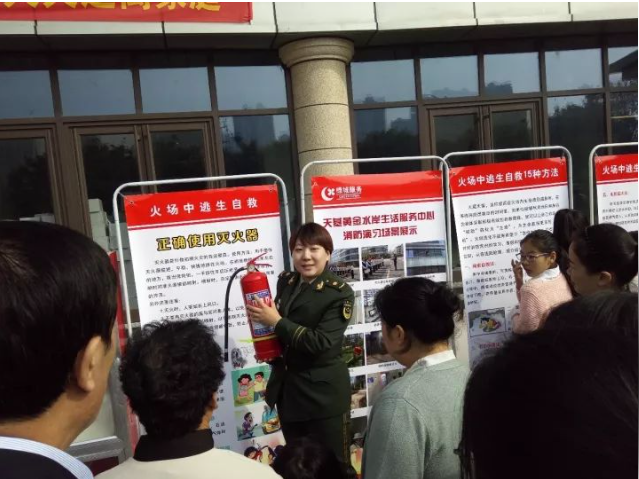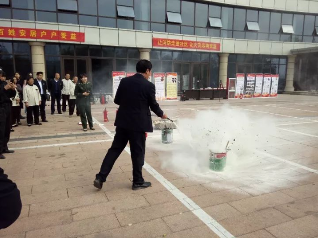 活动中,临沂市兰山区消防大队相关负责人先后给社区居民耐心讲述消防安全的重要性,观看家庭消防安全的动画演示片并对注意事项进行讲解,介绍了干粉灭火器、背负式灭火器、消防栓、火灾手动报警器的正确使用及在发生火灾事故后的基本扑救方法和逃生技能等消防安全知识。临沂市兰山区消防大队出动城市主战车一辆并对相关消防实物进行讲解,并现场演示了消防水带的展开连接、水枪救火、灭火器扑灭火苗、安全撤离等模拟火灾实况。