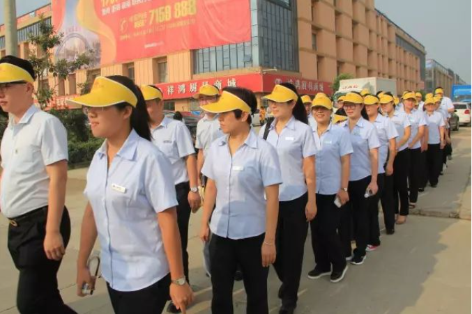 参加奠基庆典仪式的山东天基集团员工整队入场