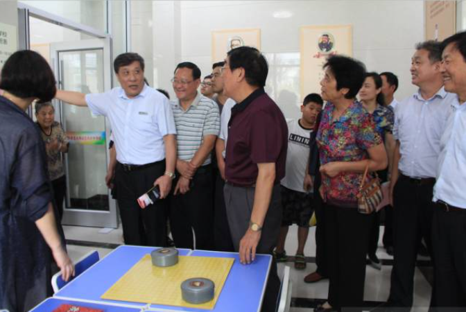 揭牌仪式结束之后,黄金山董事长陪同朱绍阳等领导参观了天基黄金水岸社区四点半学校。